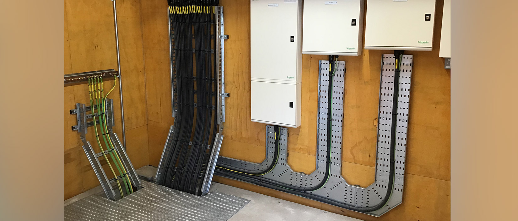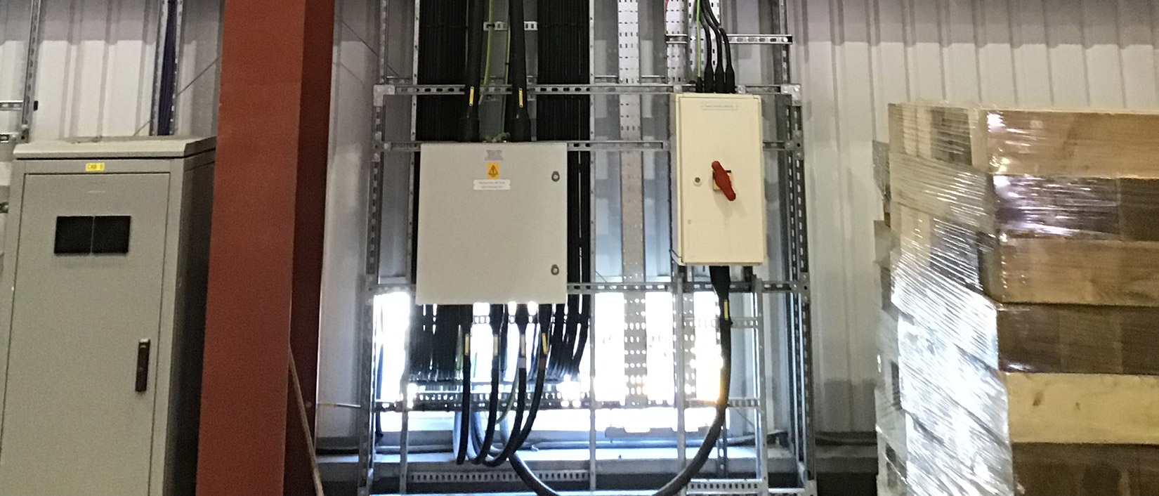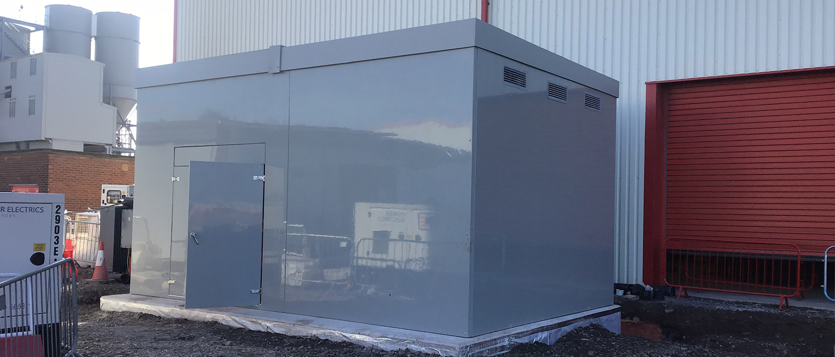Electrically the building has its own diverse HV package substations and main LV distribution panels high level perimeter ladder rack containment distributes sub-main cabling to local distribution boards. High-level Tecton LED lighting system illuminates the main production area, with emergency lighting central battery system providing safety lighting in the event of a power outage.
