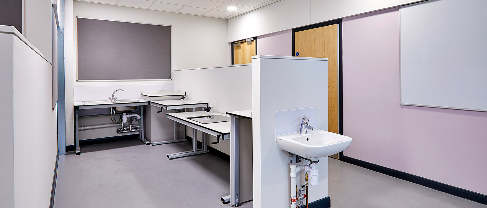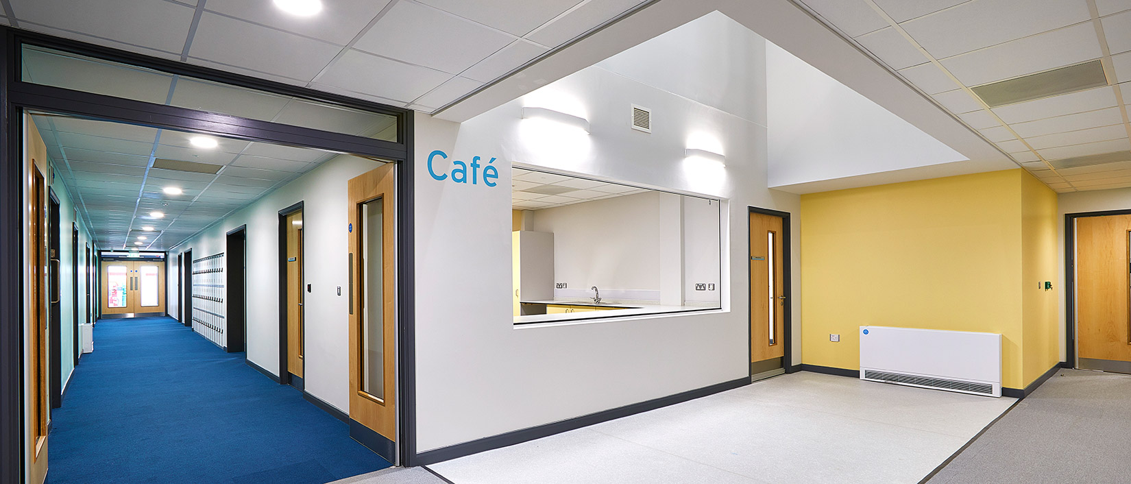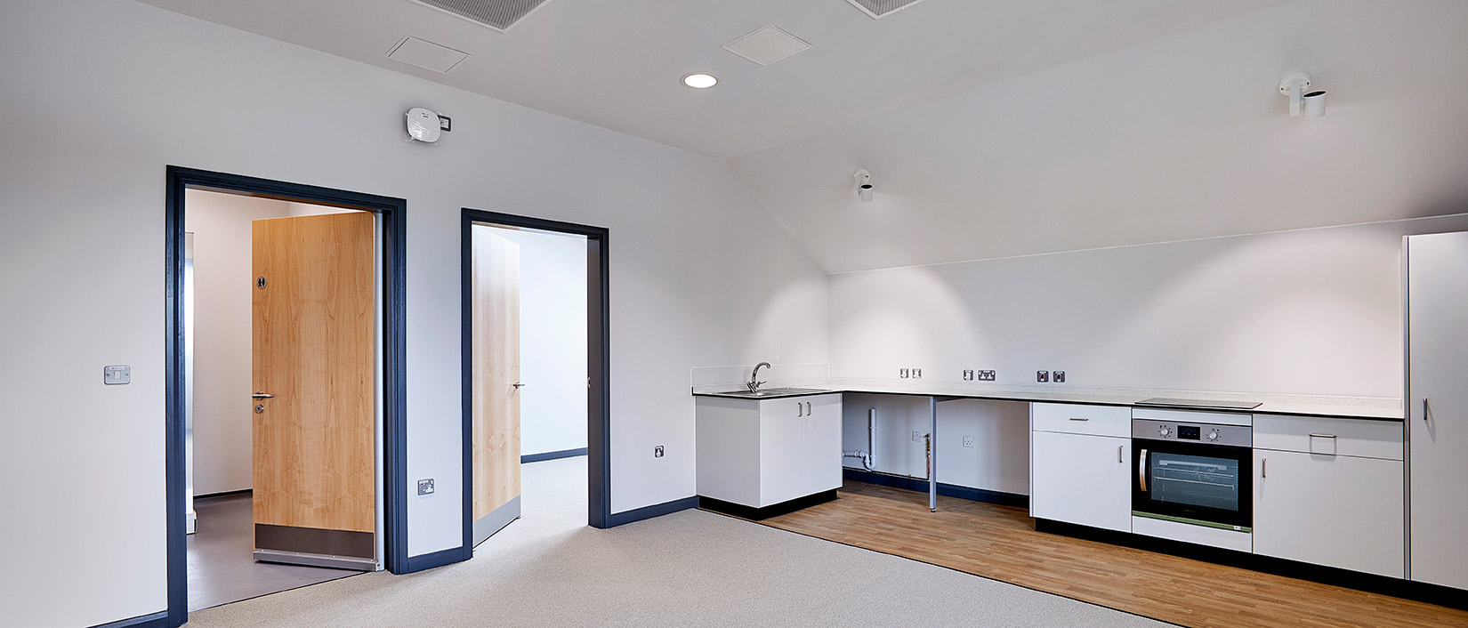 A new-build S.E.N. school in Oxford. The three-storey building consists of teaching rooms across the ground and first floors, main assembly halls and administration offices. The second floor is where you will find a live-in replica home, providing the facilities to teach essential life-skills to the older pupils.