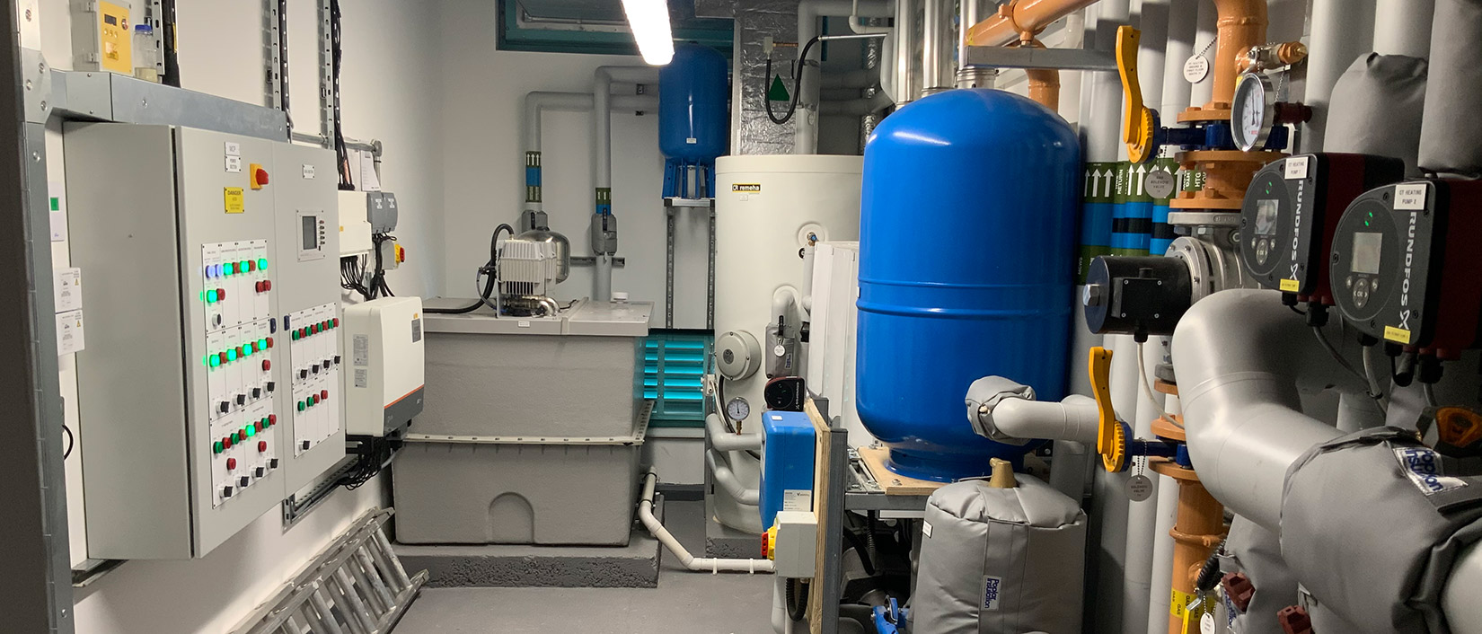 The project comprises natural vent systems, sanitaryware and public health pipework, domestic hot water services, a mid-level boiler plant room supplies heating into the building via a 90+ strong radiator system, the whole building performance monitored by a BMS system. Electrical main distribution throughout the building to local distribution boards, general lighting and power, emergency lighting, fire alarm, CCTV, access control and intruder alarm, complete data infrastructure including diverse fibre optic links to new out-buildings, lighting protection and a significant roof-mounted solar PV installation.