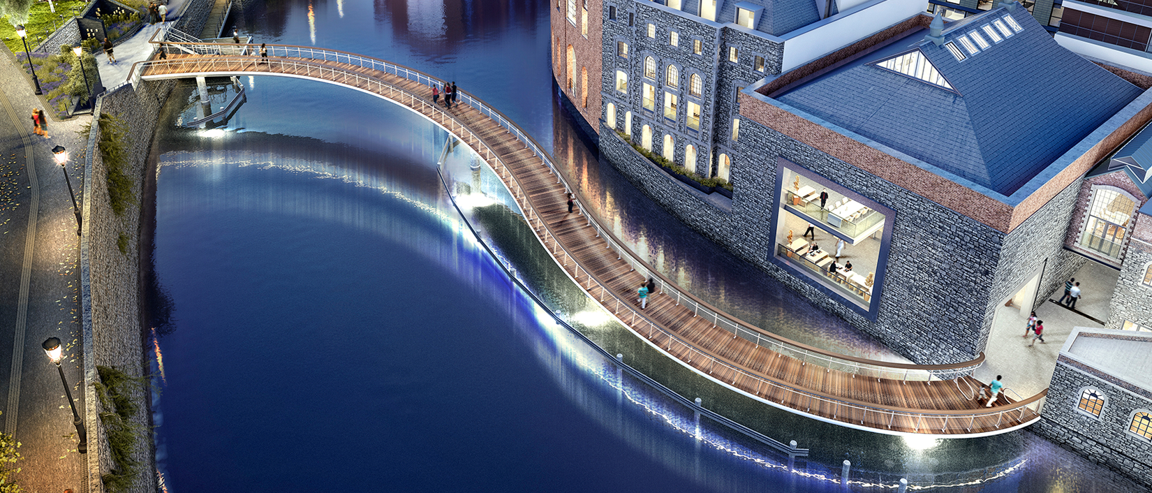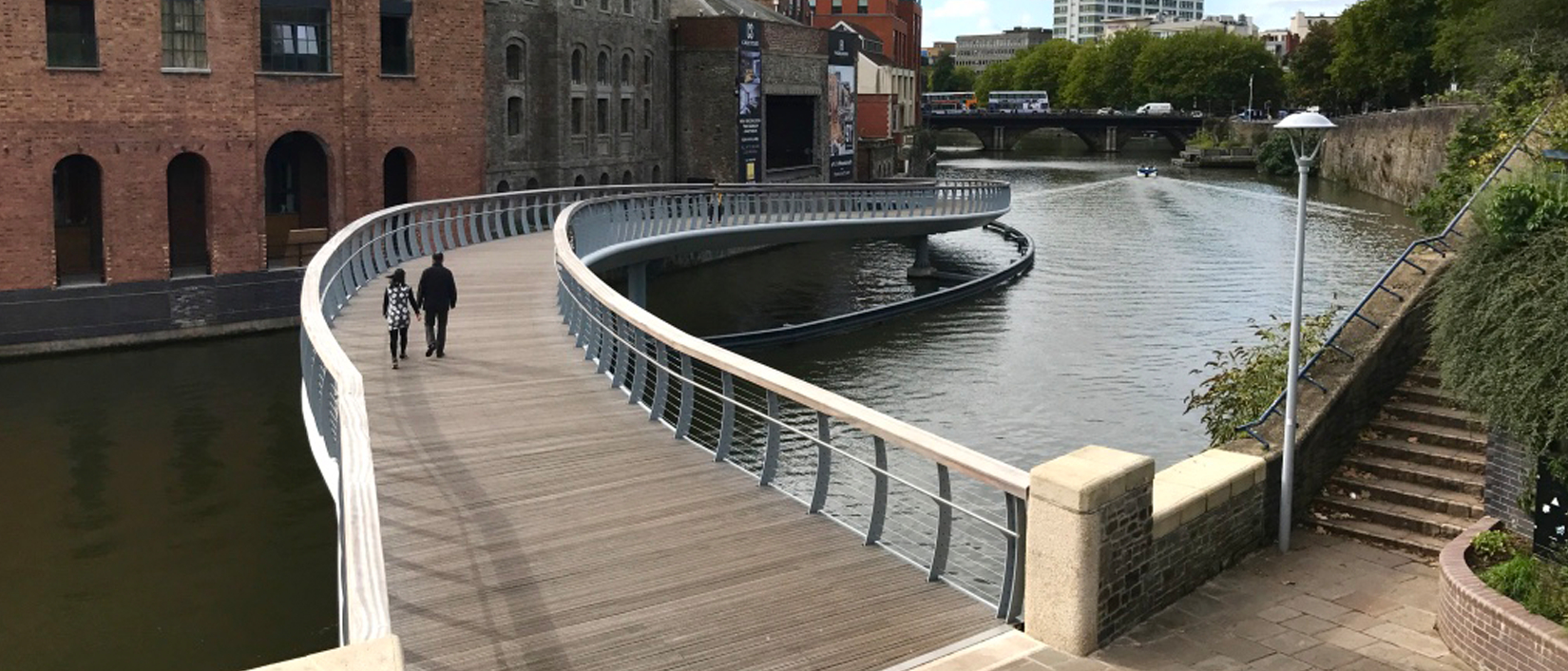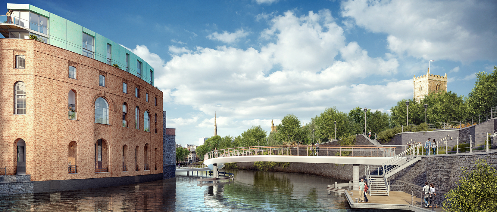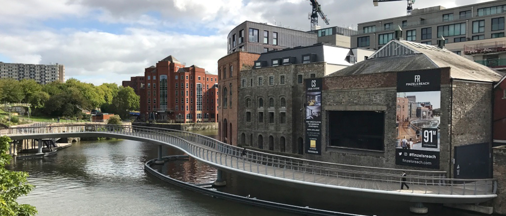 A new Iconic S-shaped bridge connecting Castle Park with Finzels Reach (a new city quarter created on a former brewery site between Counter-slip and the docks in Central Bristol).