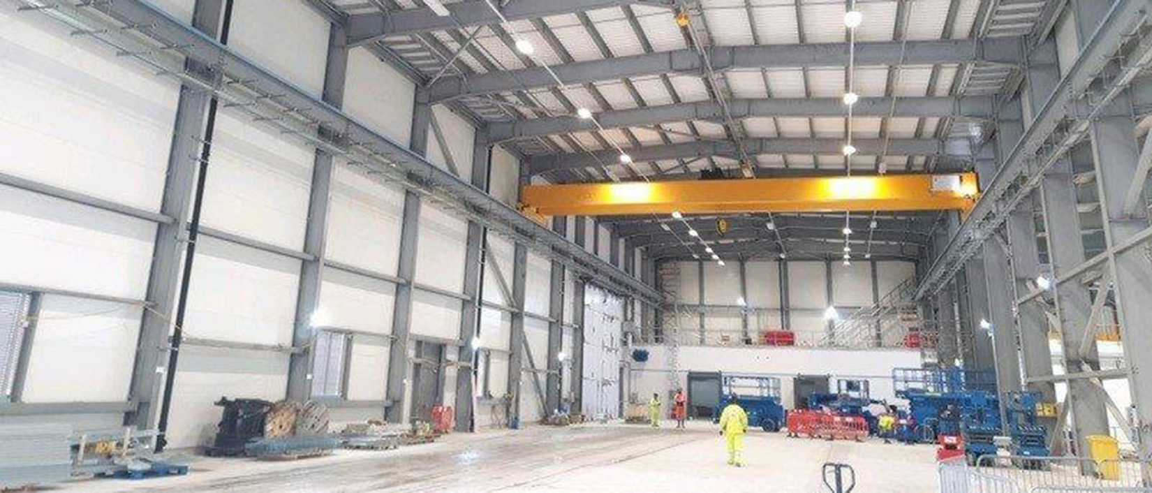 A new 5,000 square metre warehouse built within the site boundaries of the Hinkley Point C (HPC) nuclear power station. This was the first of the permanent buildings to be erected on the site.