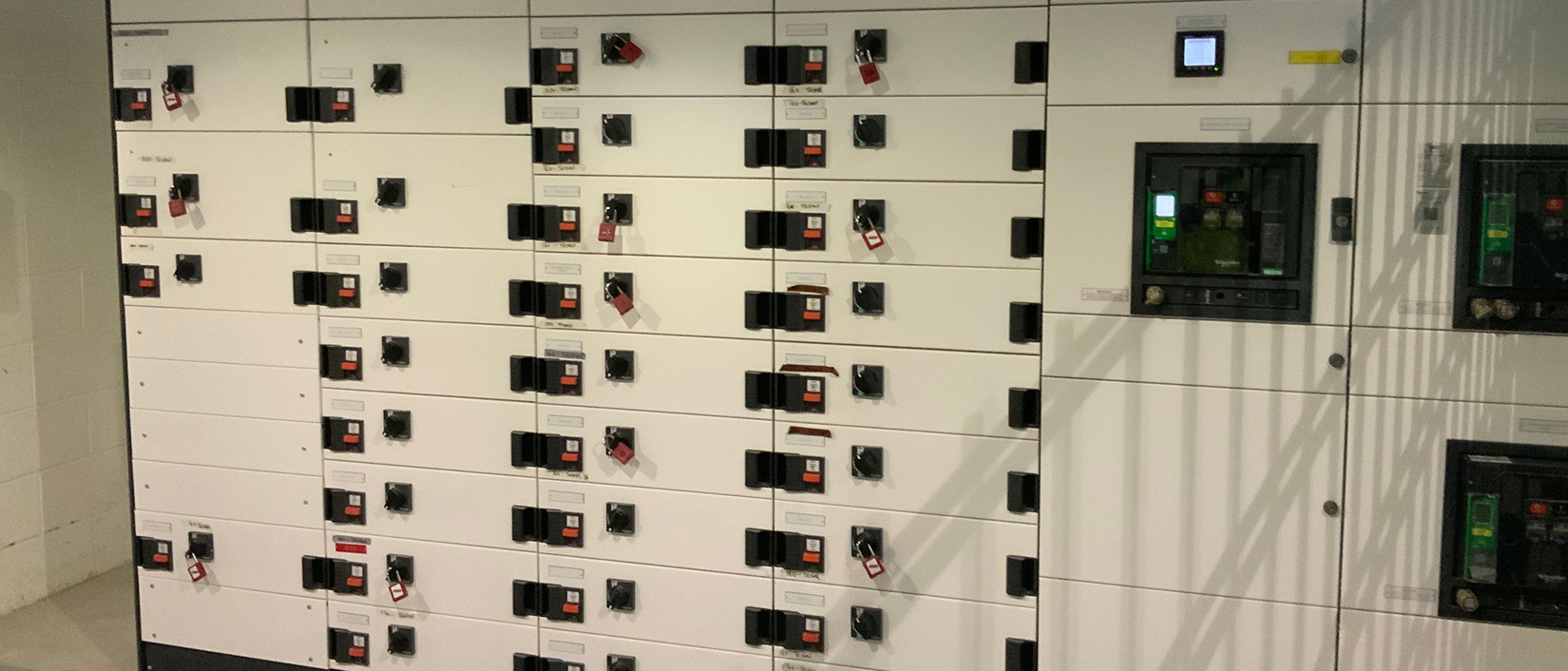 A new HV package substation supplies a primary distribution panel, with sub main cabling installed to local lighting and power sub distribution boards.