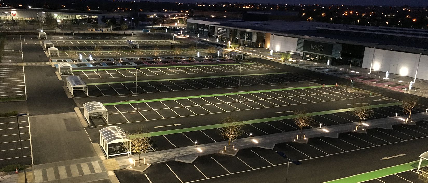 The installation of new street lighting and in-ground walkway lighting controlled by the Telensa technology. The project also involved the installation of an Automatic Number Plate Recognition system, site-wide CCTV system and full coverage wi-fi installation together with the full electrical installation to a bespoke management office facility comprising of general lighting, power, access control, fire alarm and CCTV.