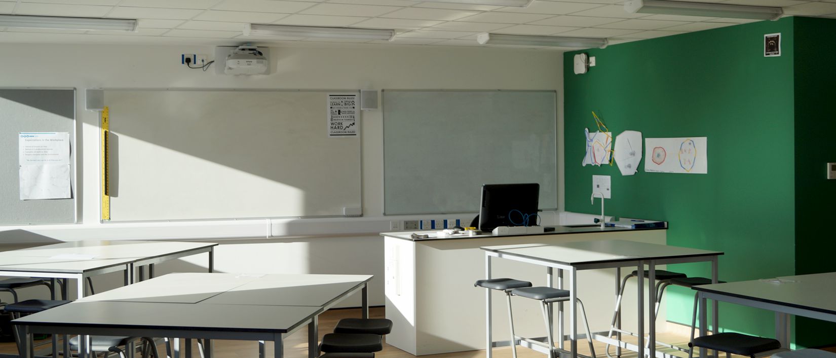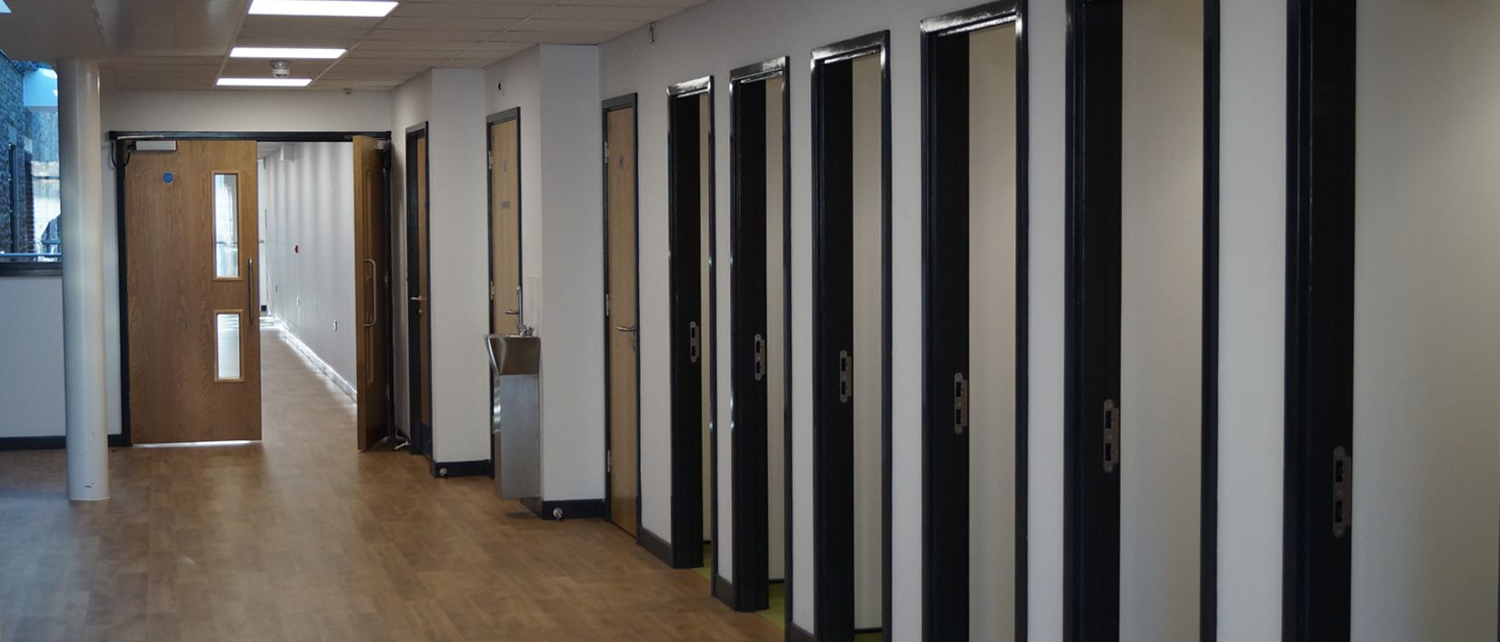 The majority of M&E services within the existing buildings were surface mounted so required to be aesthetically pleasing, this was made especially difficult due to existing roof structure and supports remaining and not being structurally suitable for modern services installation.